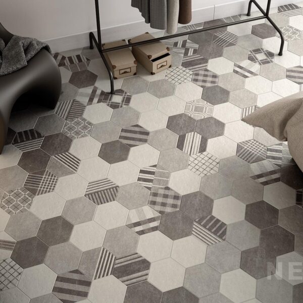 異形磚中的六角磚是一種磁磚,具有獨特的六邊形形狀。這些六角磚在室內裝飾中非常受歡迎,因為它們可以創造出各種不同的圖案和設計。以下是一些來自西班牙的六角磚系列: