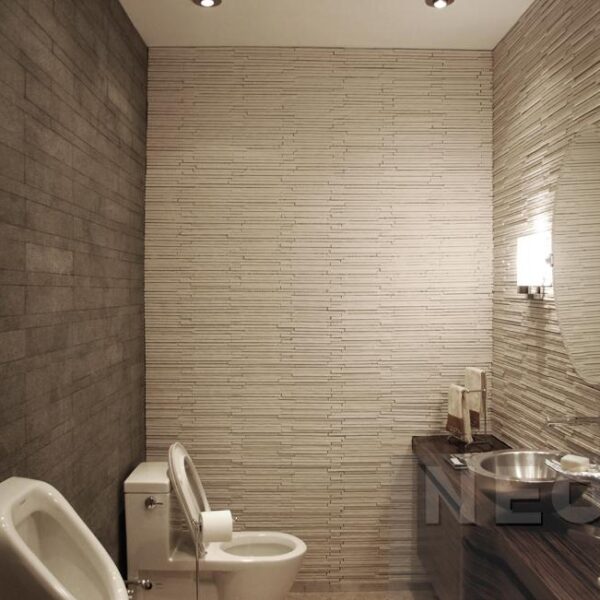 ★TOYOKAWA(豊川石):這是一種傳統的濕式射出隧道窯製法的外牆磚,厚度可達35mm,並且可以生產多種顏色。它的厚度和多樣形式的異形磚使得設計師可以輕鬆表現出不同的想法。此外,TOYOKAWA外牆磚具有耐久性、化學穩定性和物理安定性,不易產生潮濕發霉、矽油汙染或白華現象。